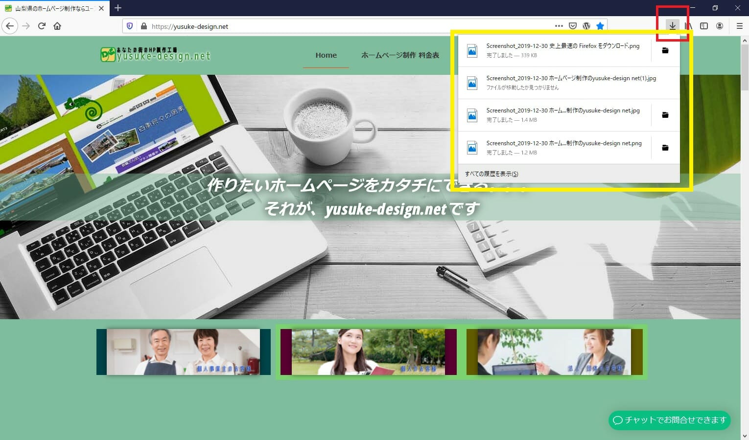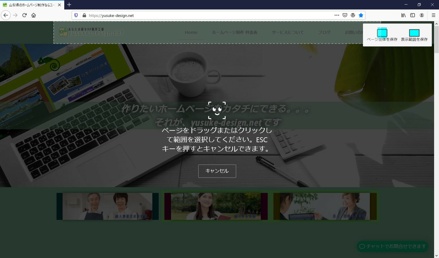 このようにFirefoxなら簡単にホームページのキャプチャを撮ることができます!